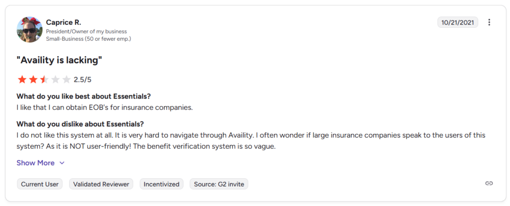 While Availity works well as a multi-payer portal, it can feel slow for teams that need quick, clear answers during admissions. Users often mention that navigation takes multiple steps, which adds time when staff are already moving between screens or systems.