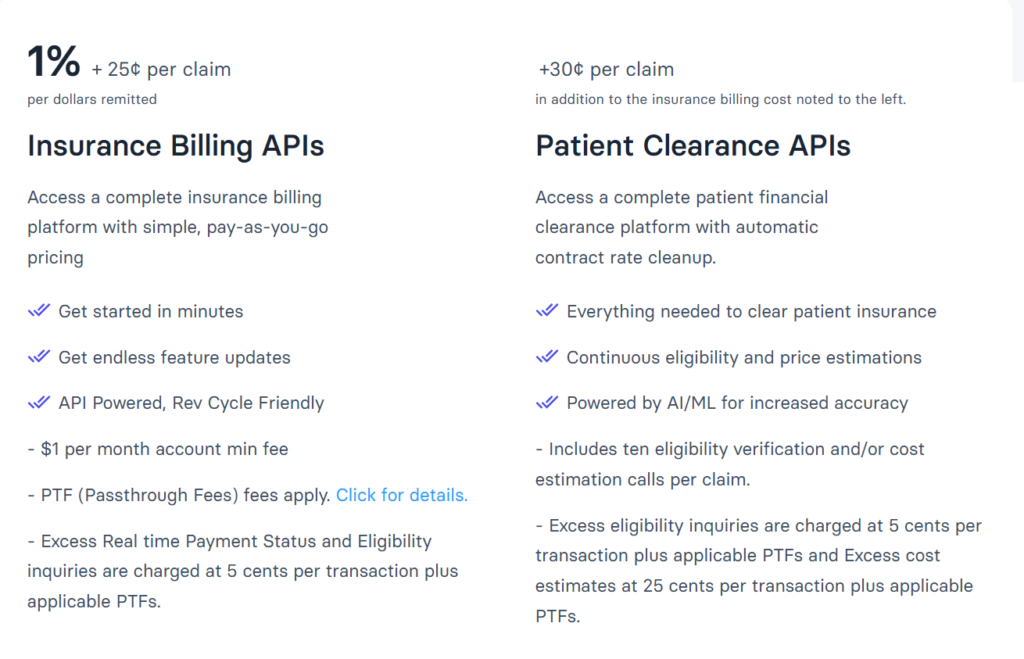 | Eligible | ✅ Yes | ⚠️ Partial | ❌ No | ⚠️ Some | ✅ Yes | REST / FHIR APIs | Per-call |