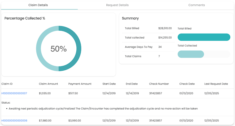 Give billing teams visibility into submitted claims. Track status changes, rejections, and payer responses in one system. Reduce back-and-forth between intake and billing by catching issues before denial letters arrive.
